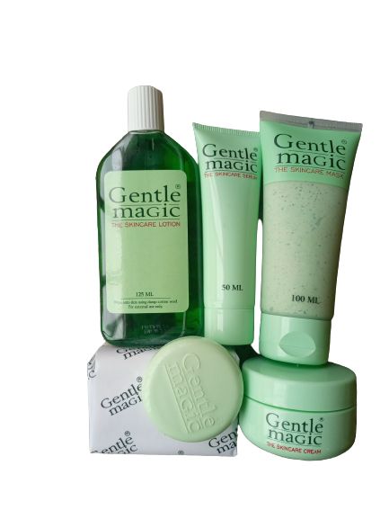 The Skincare Soap Gentle Magic Soap is a special glycine-wrapped bar infused with Flowers of Sulphur and exfoliating micro-granules to lift away dead skin cells and surface bacteria, leaving you with a healthier, fresher skin. For best results: Start off your skincare routine with the soap bar to remove any blockages that may inhibit the efficacy of the other products. The Skincare Lotion Gentle Magic Lotion is a deep-cleansing astringent containing Ethyl Alcohol, Pro-Vitamin B3, and special herbal extracts to help cleanse away oiliness and harmful germs, leaving you with a healthier, problem-free skin. For best results: Apply the lotion every morning and evening with damp cotton wool and allow skin to dry. The Skincare Serum Gentle Magic Serum is a light-weight, intensive moisturiser enriched with Pro-Vitaminn B3, B5 and C to promote a blemish free, balanced complexion. For best results: Massage the serum on to clean skin every evening. The Skincare Oil Gentle Magic Oil is a fast-absorbing lubricant infused with special Rosehip Seed Oil and Vitamin E to promote a youthful-looking, healthier skin. Skincare Tip: Add a few drops of oil to damaged or ageing skin, massage just a few drops of the oil into skin areas in need of a little more nourishment and attention whenever necessary.