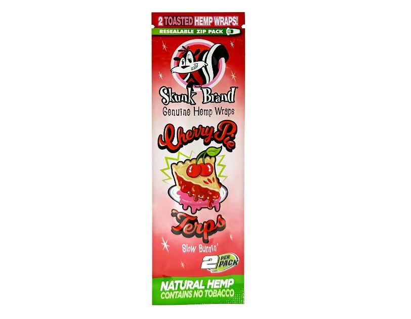 cherry pie flavor brings forth delicious notes of sweet and tart that can't be matched by any other wrap available today. Plus, these wraps contain the finest terpenes from hemp plants, providing a mellow smoke like no other. With Skunk Brand Terp Enhanced Hemp Wraps, your blunts will be taken to the next level! Enjoy all the benefits of Skunk Brand with this premium product now!