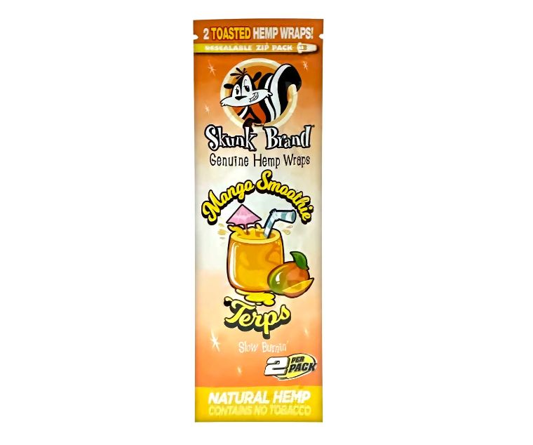 Mango Smoothie Flavor provide a delicious smoking experience. These wraps are made from natural, toasted hemp and infused with natural terpenes from the hemp plant for a mellow, smooth smoke. These all-natural wraps have been brought to the next level with their exotic mango smoothie flavor, making them an ideal choice for any smoker looking for something special. Skunk Terp Enhanced Hemp Wraps will give you an unforgettable flavor and aroma that you won't find anywhere else! Try Skunk Terp Enhanced Hemp Wraps today and elevate your smoking experience!