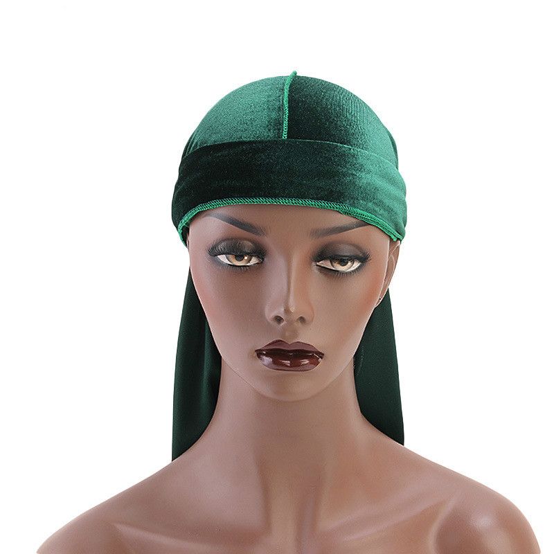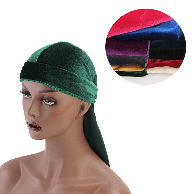 1X Unisex Velvet Durag Long Tail and Wide Straps Waves for Men Solid Wide Doo Rag Bonnet Cap Comfortable Sleeping Hat Wholesale