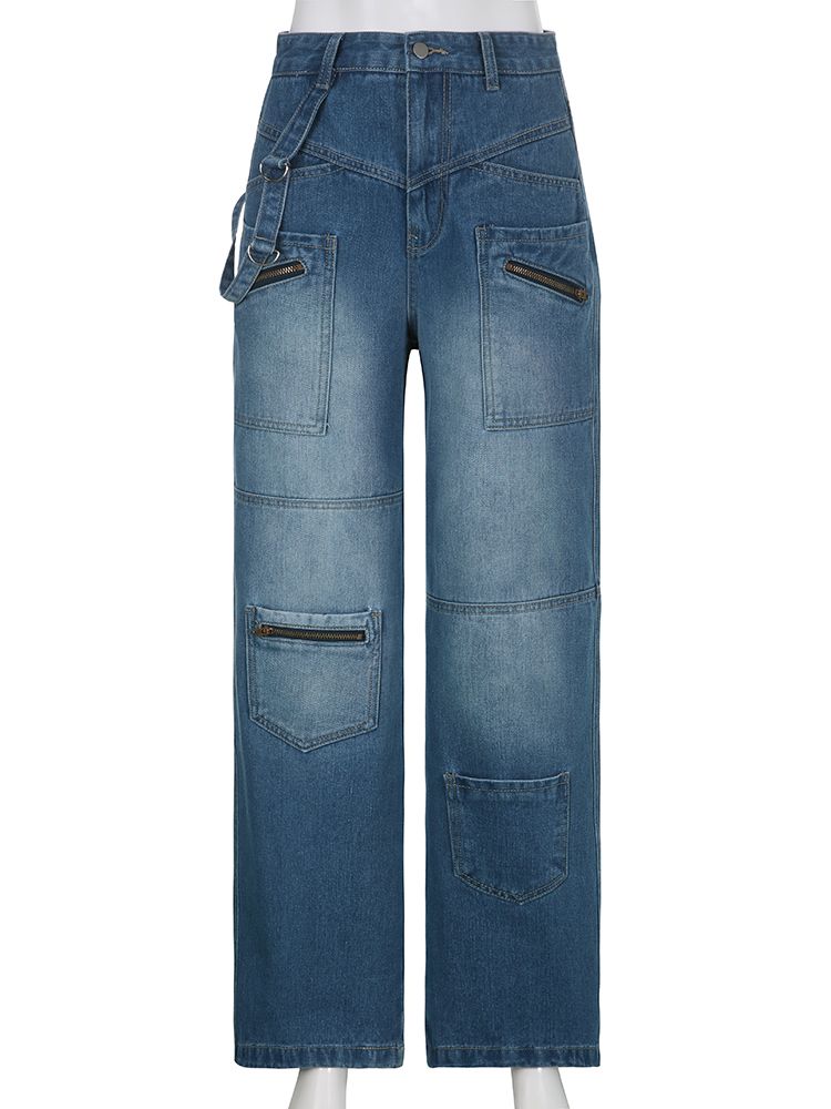 1X Weekeep Fashion Vintage 2000s Streetwear Jeans Women Low Waist Button Up Straight Pants Korean Retro Baggy 90s Denim Cargo Pants