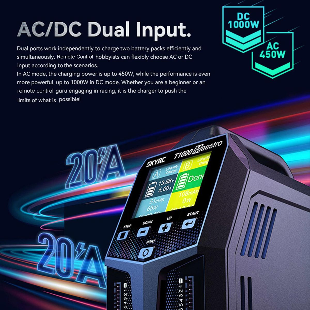 Buy SKYRC T1000 Maestro Charger, AC/DC Dual Balance Charger 450W 1000W Battery Charger for Remote Control Model EU Plug in Nigeria
