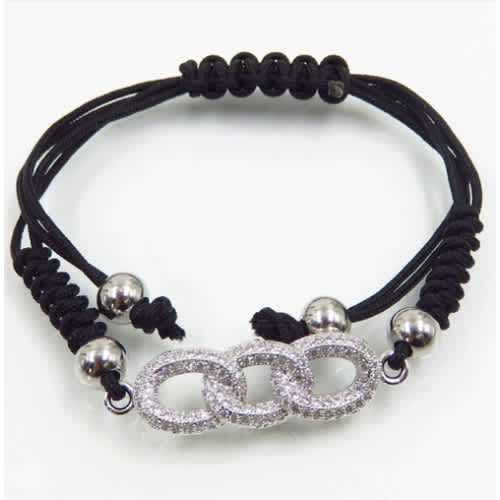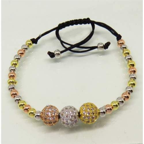 Three tone zircon beads on three tone bead bracelet with adjustable strap