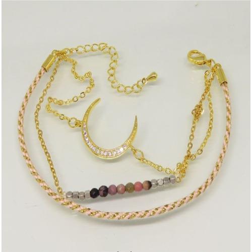 One rope and two chain lines bracelet with bead charms and crystal stone charm