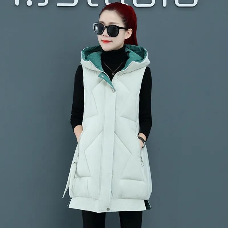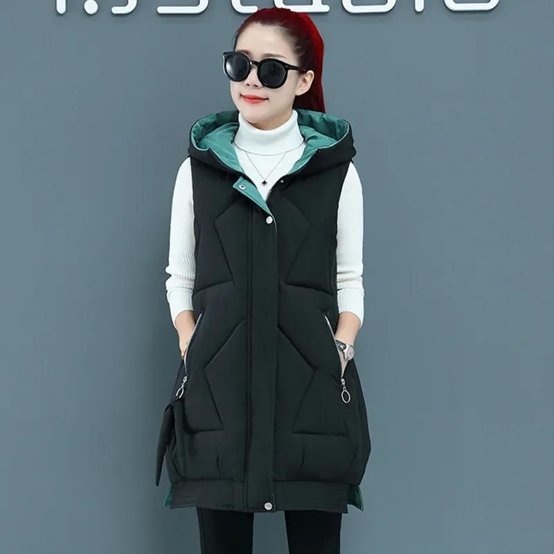 1X Chaqueta de invierno sin mangas para mujer, abrigo largo con capucha, algodon, acolchado, calido, prendas de vestir, novedad de