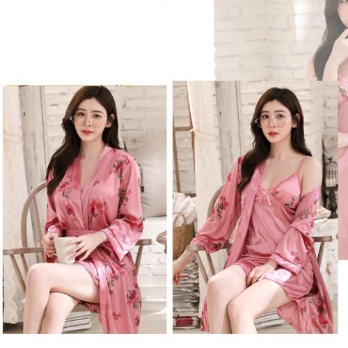 Buy Sleeping Wear Sets Women Robe Ice Silk Nightdress Pajama Set Plus Size in Nigeria