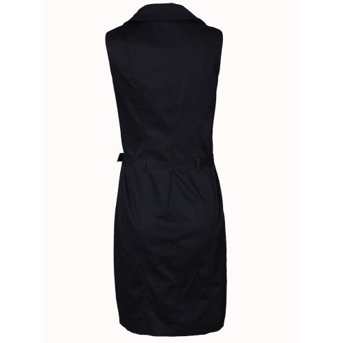 Buy Sleeveless Colar Button Down Frills Ladies Dress With Belt - Black - Lg--5079 in Nigeria