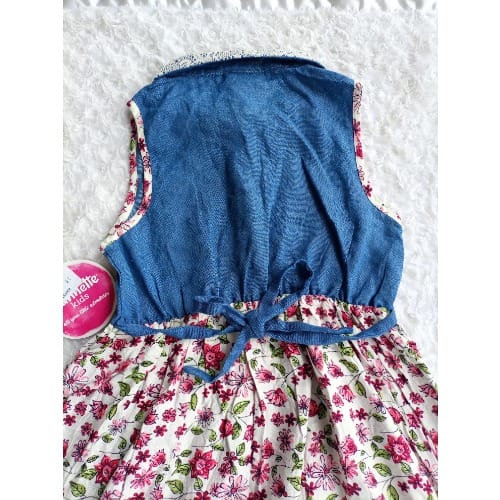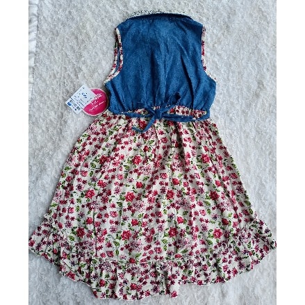 Buy Sleeveless Denim Floral Print Hem Low Dress in Nigeria