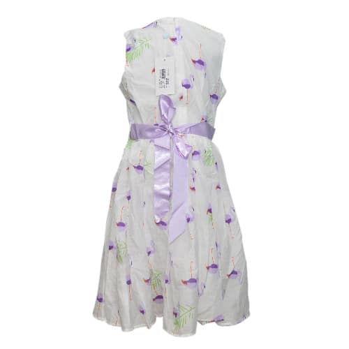 Off white with touch of green and purple Girls Sleeveless Knee Length Dress.