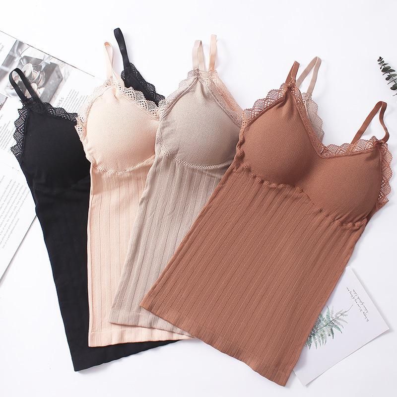 1X Camisetas sin mangas de encaje para mujer ropa interior termica de invierno de talla grande Top de mujer ropa interior sin mangas camisola acolchada