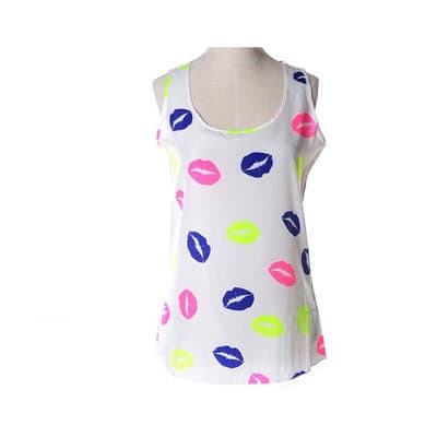 Buy Sleeveless Lips Print Chiffon Camisole Top + Quilted Handbag - Purple in Nigeria