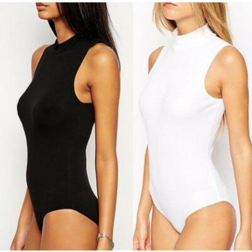 Buy Sleeveless Turtleneck Bodysuit - 2 Pieces - Black And White in Nigeria