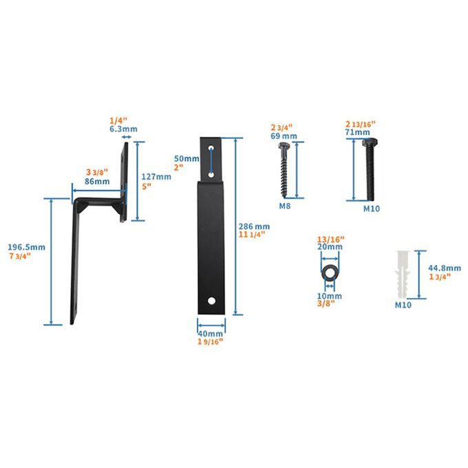 1x Bracket Body2x Hexagon Self Tapping Screws4x Gasket2x Expansion Tubes1x Machine Screw1x Flange Nut