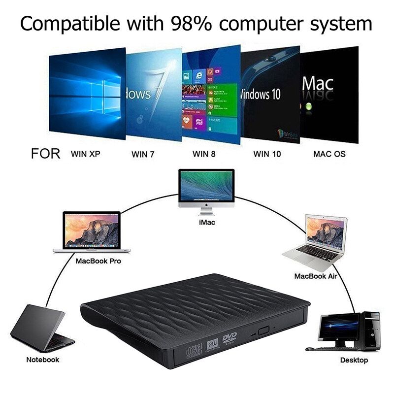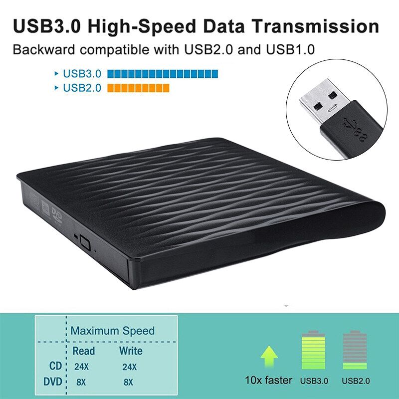 Features:1. Ultra-slim portable: Ultra-slim portable DVD drive, lightweight, which is convenient to use and carry whether at home or travelling.