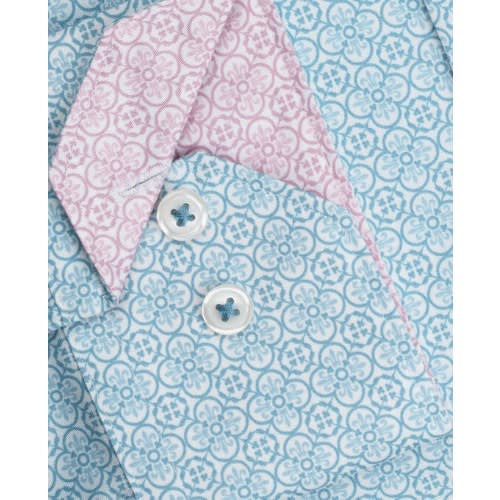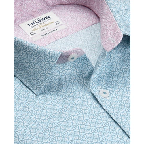 Buy Slim Fit Light Blue Mosaic Print With Contrast Trim Button Cuff Shirt in Nigeria