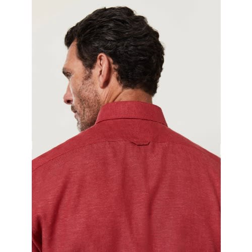 With its vivid crimson hue, this shirt makes a bold statement, while contrast stitching on the bottom button and cuffs give it a final flourish of style. The depth of the colour can be attributed to the use of natural and sustainable modal in the fabric, a fibre that holds dye particularly well.