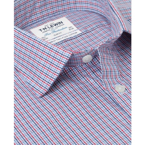 Men's Blue & Navy Multi Check Slim Fit Shirt - Single Cuff