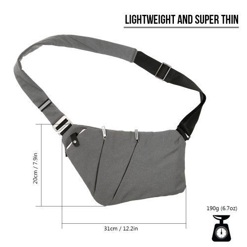 Features:Lightweight: Ultra slim chest bag measures only 0.4inch thick. It is made from premium polyester material, water repellent and super lightweight (less than 7oz).