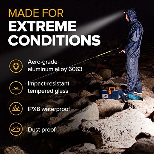 - HEAVY DUTY - This dust and waterproof LED headlamp is a must-have on the list of amping essentials. The headlight sports an aero-grade aluminum onstrution designed to handle extreme onditions.