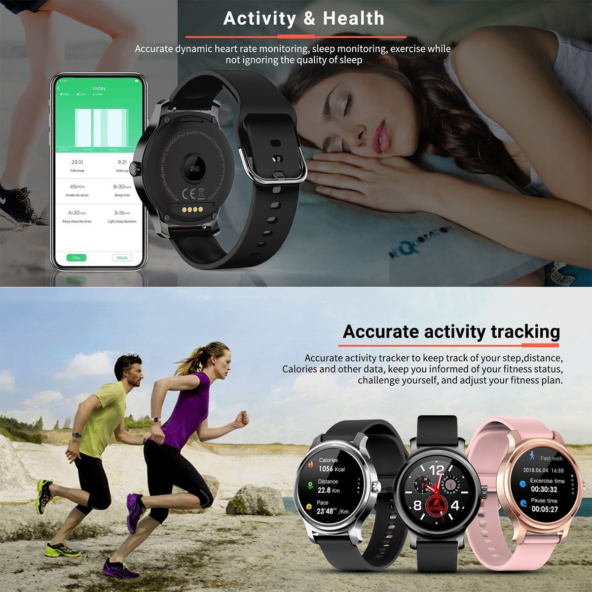 This multi-function smart watch features the latest full-round, full-touch dial design. The full screen and natural lines make the watch look simple and elegant. It also supports multiple languages, which will present you a better wearing experience.