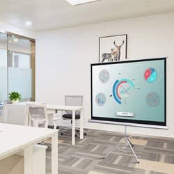 Use the 60 x60 Tripod Projector Screen for your presentations on-the-go. The portable 60 x 60 inch projector screen is ideal for mobile usage, where the screen is not meant for permanent fixture on the wall or ceiling. This is the screen you set up on a tripod stand at your presentation venue and roll it up into its housing when you're done. It's easy to set up when required and to dismantle and pack up when your presentation is done.