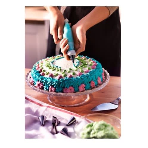 Use your creativity and make your cakes, muffins and other baked goods into works of art with the help of the cake decoration set. The pastry bag has six different piping tubes that create different patterns when you squeeze out for example whipped cream.