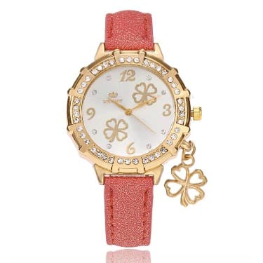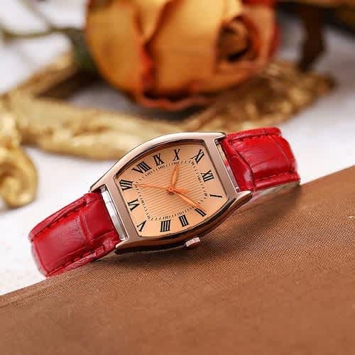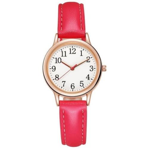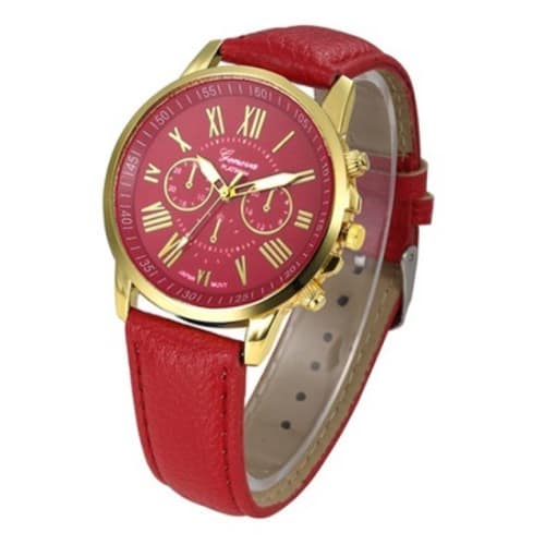 Women Quartz Round Gold Frame Leather Wristwatch For Ladies - Red