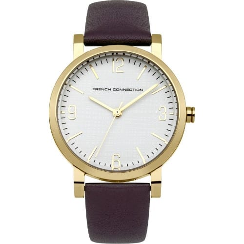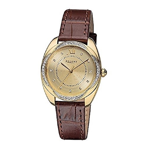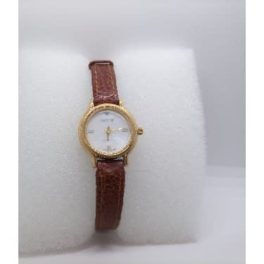 Fashionable Ladies Leather Wristwatch - Gold Frame - Brown Leather