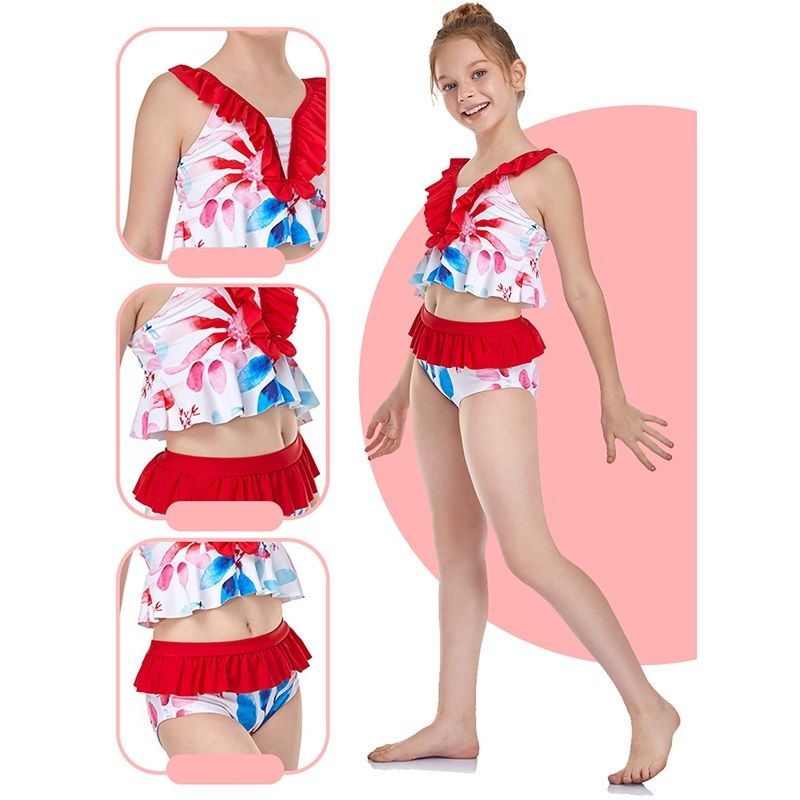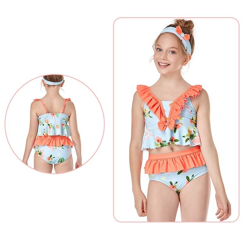 Small Flounce Print Swimwear + Swimming Trunks Baby Girls Split Swimsuit Set (Orange Size:152)