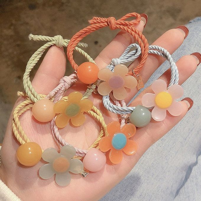Small Fresh Hair Rope Ute Olored Flowers R Fairy Knotted Hair Rope Gi Heart Tie Head Rubber Band Hair Ring-blue