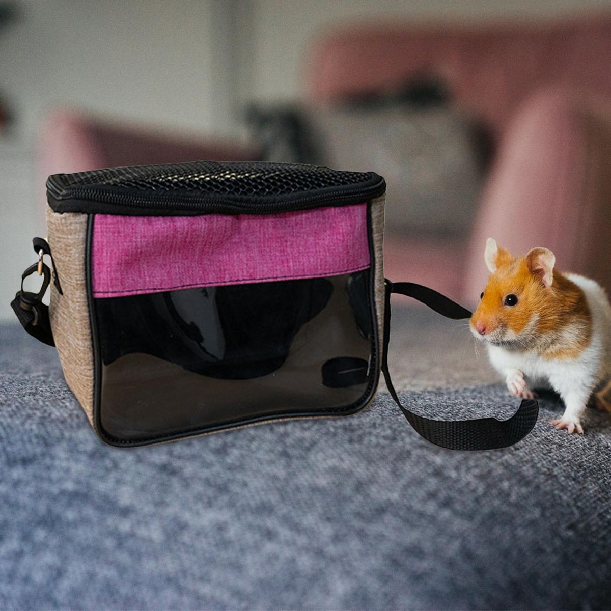 hamster carrier;Hamster Carrier Bag Travel Cage Guinea Pig Pouch;Mesh Breathable Adjustable Strap Hangbag Carry;Dog Outdoor Pet Bag Carrier Cat Zipper Tote Case;Pets Supplies Traveling Puppy Squirrel Rat Kitten;Chinchilla Squirrel Bunny Small Animals Supplies