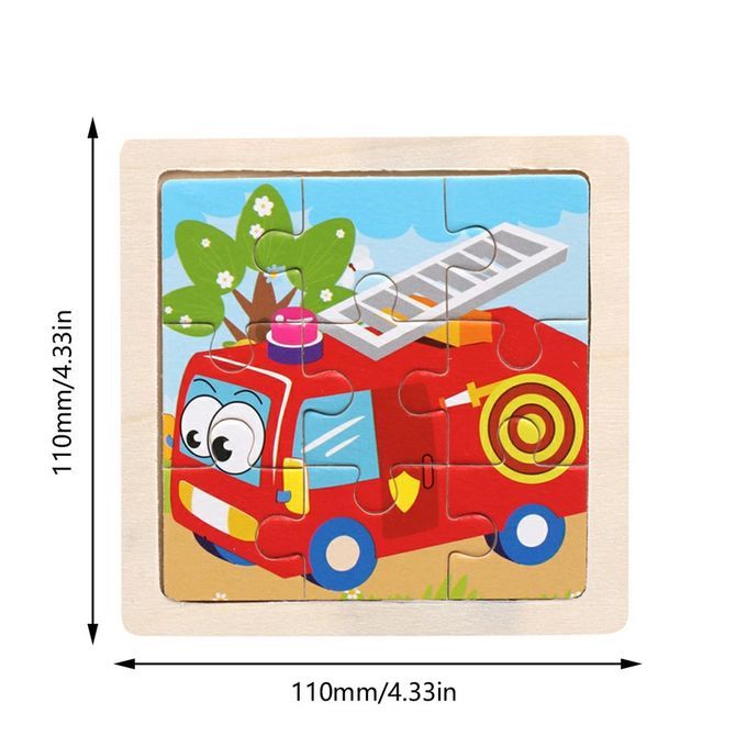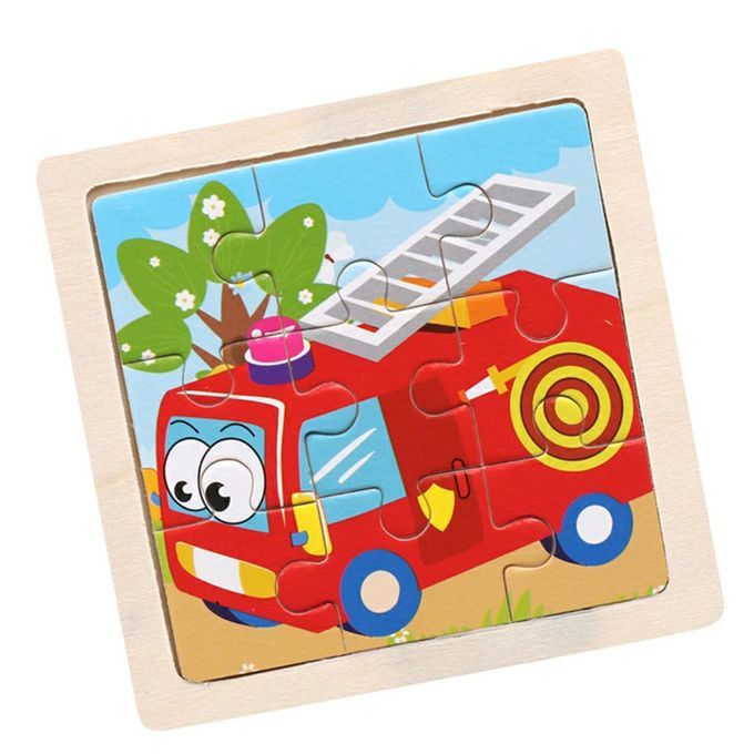Small Puzzle Hildren's Puzzle 9 Pie Es Of Woody Forest Animal Story Puzzle-Multicolor-Fire Truck