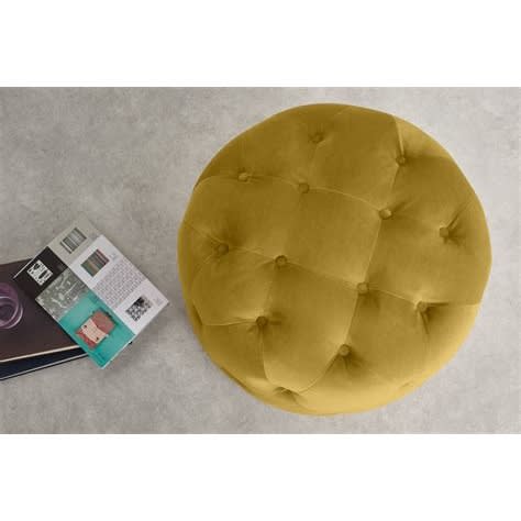 This is a striking and elegant footstool. Buttoning adds texture and shape as well as the right amount of opulence. In a soft, high-quality fabric with dark stain legs, this footstool is perfect for resting your feet or perching your tea set in style.