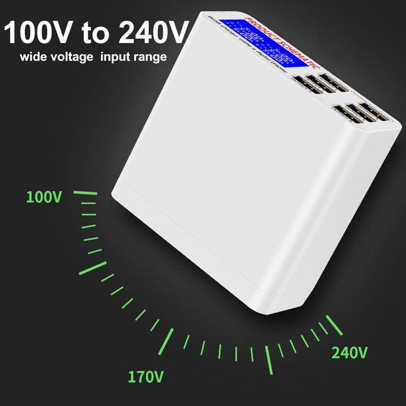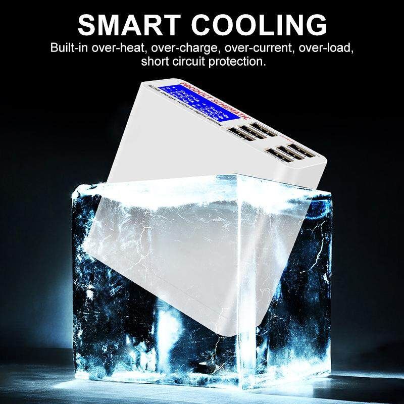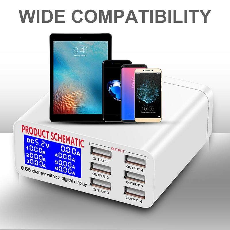 3. 6 USB port with LCD auto-display each individual port charging status simultaneously. (.2.4A per port) (Does not Qualcomm Quick Charge)