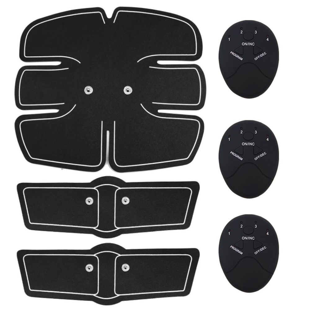 Feature: 1.High-tech unit with a wirele and 360 degree controller without obstacle. 2.High sensitivity intelligent to ensure sensitive and reliable wirele receiving. 3.Easy operation and convenient using method. 4.Easy push-on operation with 6 modes. Specification: Main Material Body: PET resin Pad: Polyacrylamide Glycerin Remote: ABS resin devices: 6 AAA batteries(not including) Power source Input: 100-240V,50/60Hz Output: DC5V 1000mA Product list: 3 x devices 1 x Abdominal pad 2 x Body pad 1 x User guide