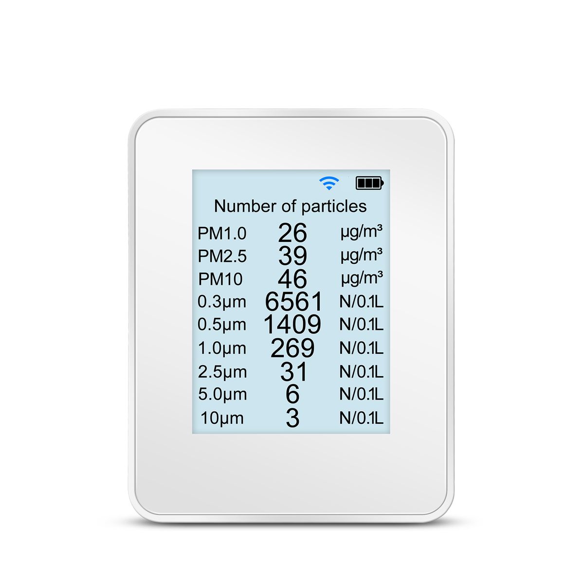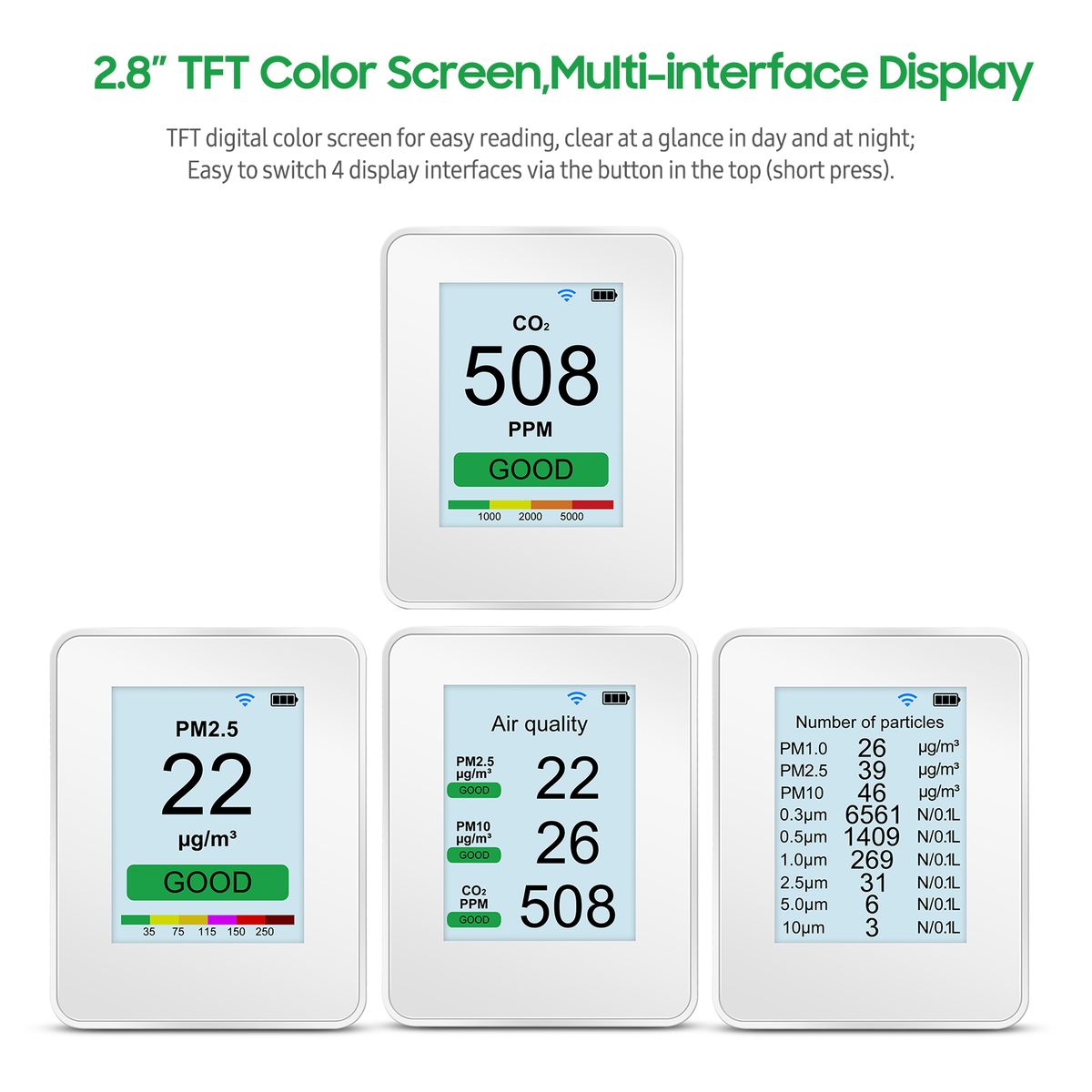 Smart Air Quality Monitor Wifi CO2 PM2.5 PM1.0 PM10 Tester APP Remote Monitoring 0.3um/ 0.5μm/ 1.0μm/ 2.5μm/ 5.0μm/ 10um Dust Particle Counter TFT Screen 2600mAh Rechargeable CO2 Detector for Room Office Greenhouse Cellar