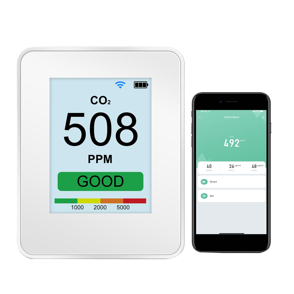 Our air quality monitor can detect CO2 concentration in your living environment. We provides a multifunction wifi air quality tester and a wifi CO2 tester for your choice. Adopting sensitive sensor, it provides quick and accurate data in the TFT digital color screen. Built in with 2600mAh rechargeable-battery, it can be widely in home, office, car, classroom, hotel, gym, greenhouse, warehouse, cellar and more!