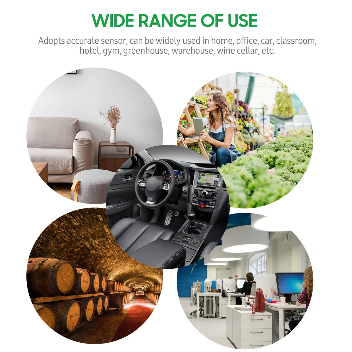 Carbon Dioxide Tester: Adopts sensitive sensor, with porous air convection, quickly and accurately detects CO2 concentration in the living environment. It can be widely used in home, office, car, classroom, hotel, gym, greenhouse, warehouse, cellar, etc.