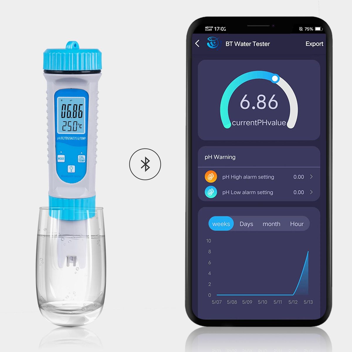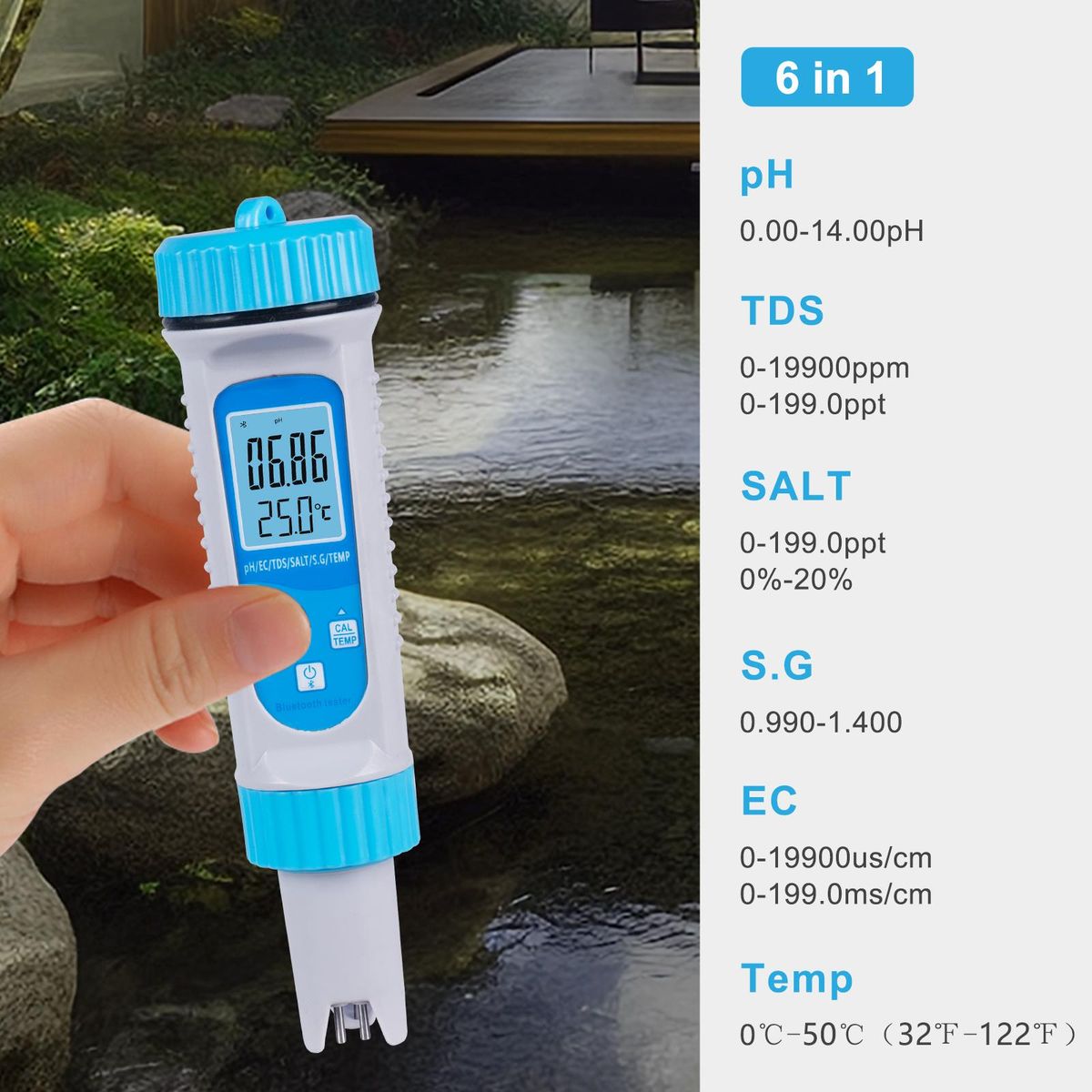 Buy Smart BT 6 in 1 Ph Tester Pool Water PH/ EC/ TDS/ SALT/ S.G/ Temperature Tester Pool Water Quality Monitor Multifunction Water Quality Detector for Pool Drinking Water Laboratory in Nigeria