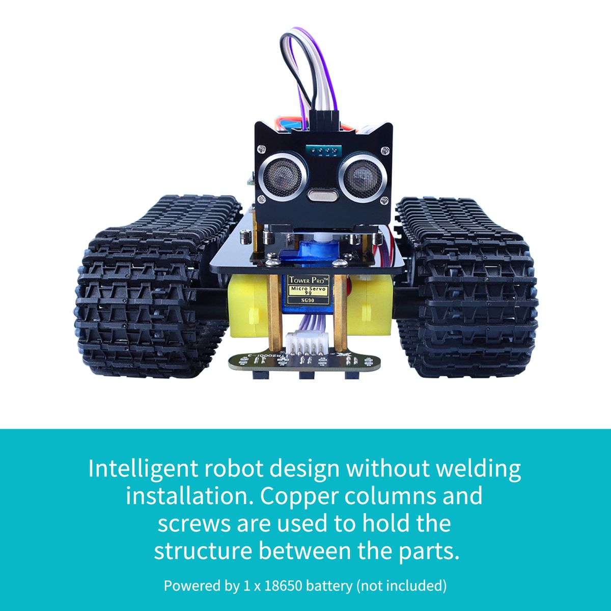 Intelligent robot design without welding installation. Copper columns and screws are used to hold the structure between the parts.