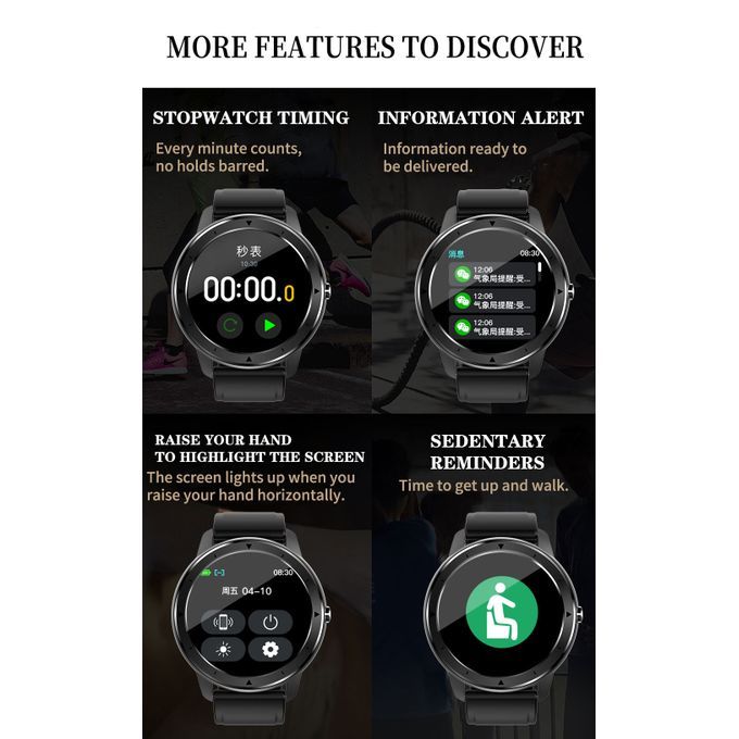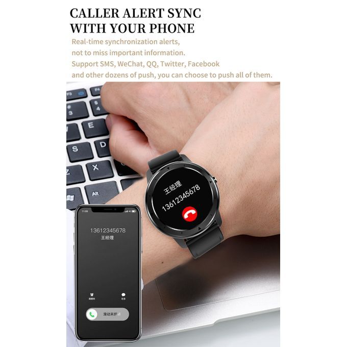 If you like a simple smart watch for men, this style is a great alternative. Wristwatch Highlights:1. Simple and elegant appearance.2. Multi-sport mode: walking, running, cycling, rope skipping, badminton, basketball, football3. Health Management and Monitor: blood pressure monitor, heart rate monitor, blood oxygen monitor, sleep quality monitor, pedometer, etc.4. Full touch screen 5. Remote control music and photo6. Built-in 2 kinds of games Smart bracelet functions:(1). Pedometer: includes calories, distance, steps(2). Smart reminders: phone call reminder, sedentary reminder and alarm clock reminder, WhatsApp call reminder(3) Notification reminder: SMS remind, all real time information can be pushed from your mobile phone (such as sync information from WeChat, Twitter, Facebook, Skype, LINE, LinkedIn, Instagram etc.)(4). Weather information push(5). Find device (6). Brightness adjustment(7). Setting(8). Stopwatch(9). Calculagraph