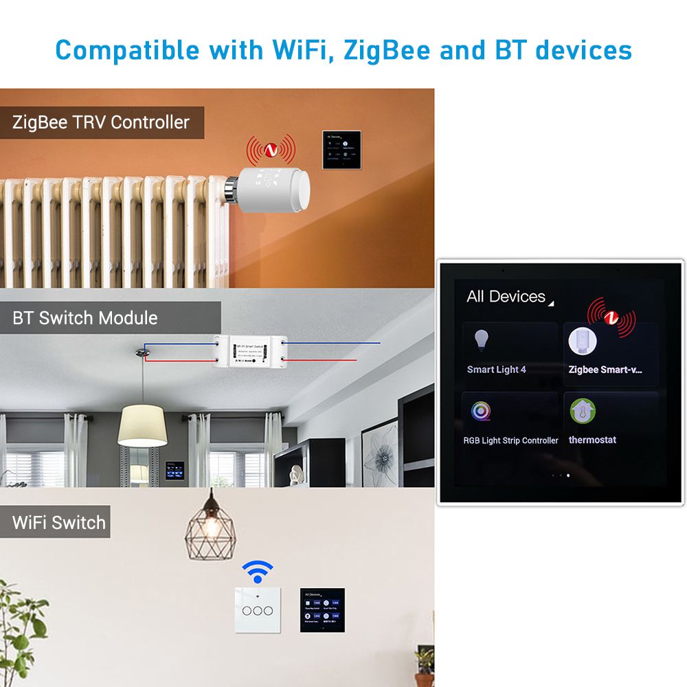 4. With ZigBee Gateway Function: Replace another ZigBee gateway at home, directly use the control panel as the gateway, add ZigBee devices in the App for intelligent control, and add up to 100+ ZigBee sub-devices.
