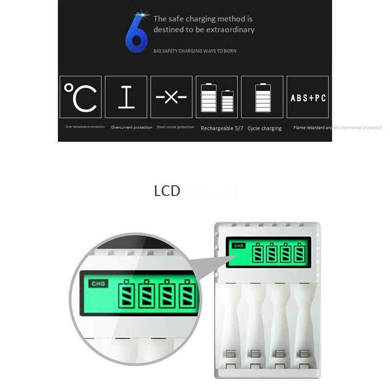 Smart Intelligent LCD Display Battery Charger with 41. This charger can charge 1-4pcs AA/AAA Ni-MH/Ni-Cd rechargeable batteries, LCD displays.