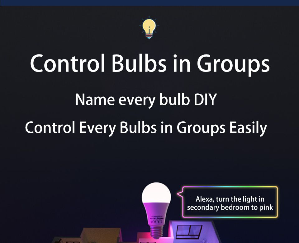 【Easy-to-use APP control】: Use Tuya Smart APP Bluetooth to control bluetooth bulbs. Using group control, it is easy to control 200 bulbs at the same time, and has grouping function. Adjust light effects, manage brightness or turn bulbs on/off with just one touch.