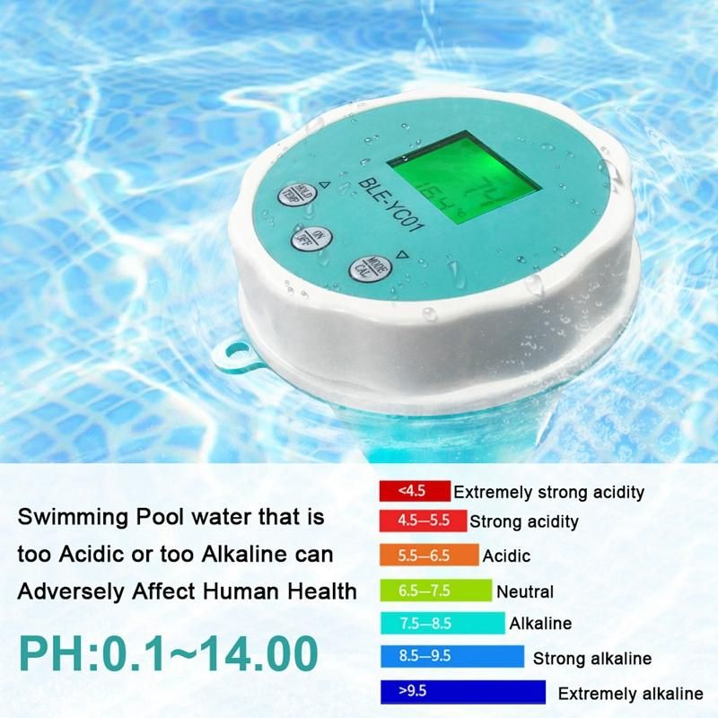 [High precision pool water quality tester] The high precision algorithm chip and electrode of our digital water quality tester accurate and fast response. Cell phone APP control backlight display to meet the needs of different people. PH Range:0.1-14.0