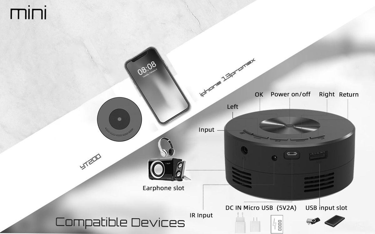 3. Adjust Projection Size: Adjust the imaging distance to adjust the projection size from 14 inches to 100 inches. Wire screen projection, use the smartphone data cable to connect the projector to realize the screen projection function, and support both for iOS and for Androids systems.