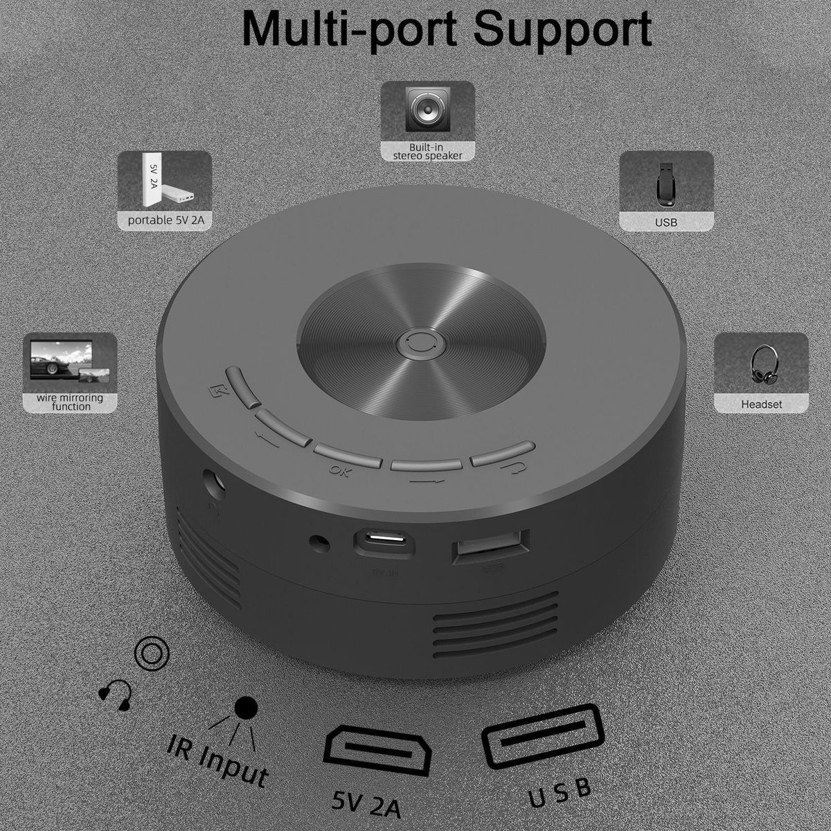 5. Eye protection: With the portable mini projector, kids can stay away from mobile phones, ipads and other electronic products, perfect for playing games, watching videos, listening to music, studying. Small size, easy to carry, can be used anywhere. Compatible with Fire TV Stick /Headphone/U Disk/Game/Camera/Phone/Tablet/PC/Amplifier.