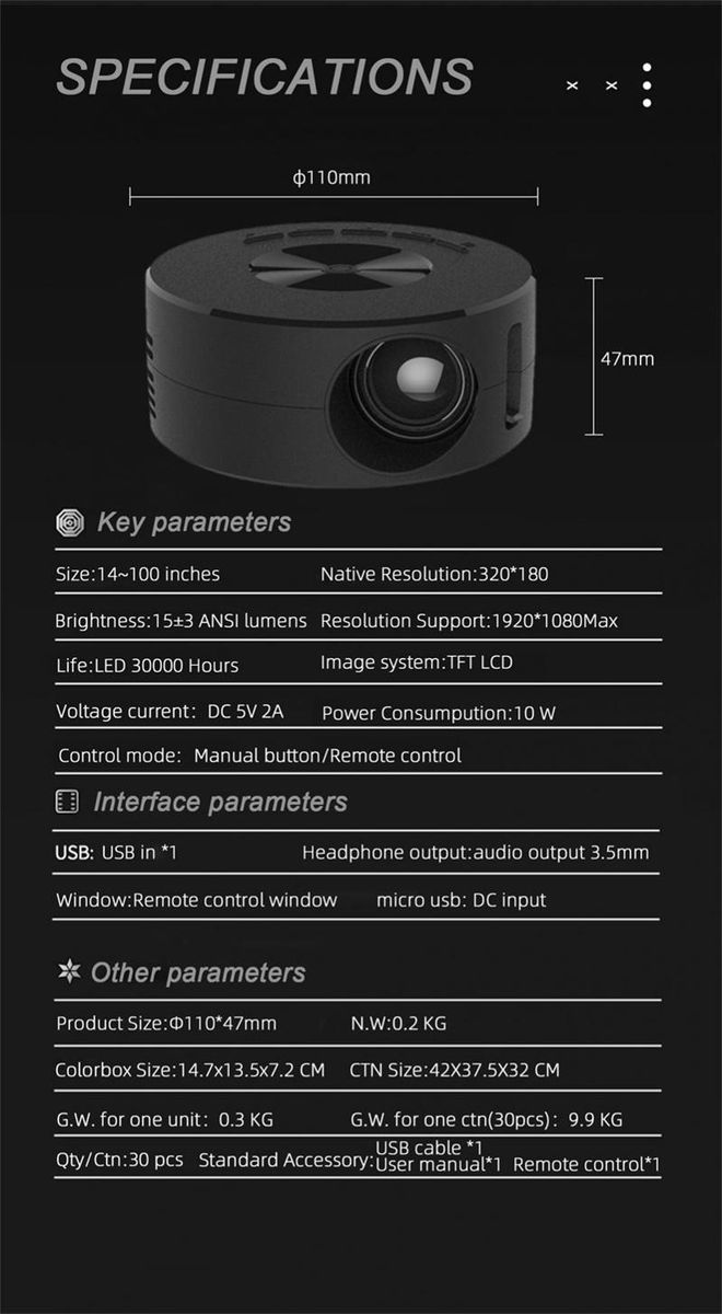 1. High resolution: This mini projector adopts LCD screen with 320*180 resolution, and the image uniformity is significantly improved. Professional optical lens, the four corners of the image are clearly visible, solving the traditional virtual focus problem. The principle of LED diffuse reflection imaging reduces eye irritation and protects eyes.