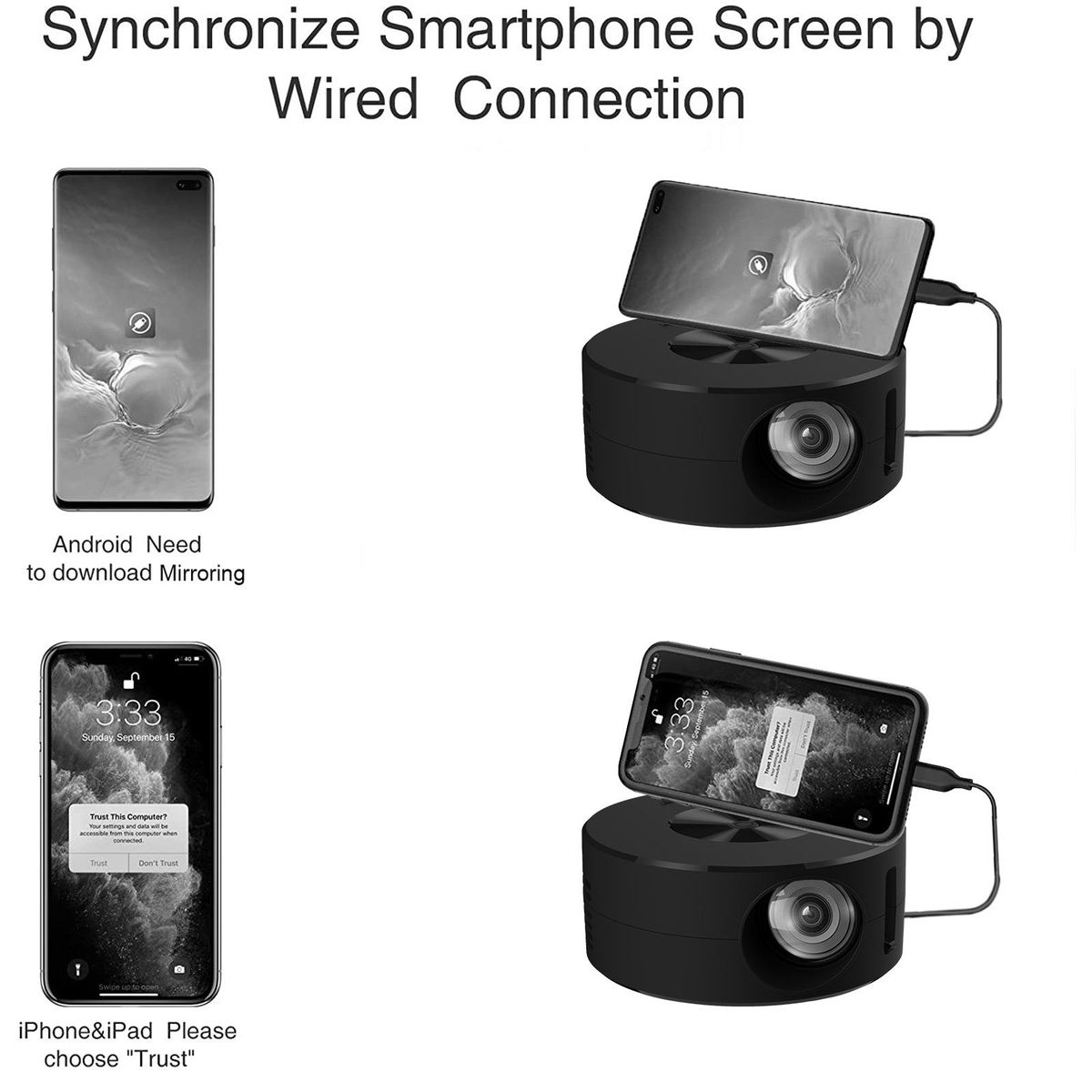 2. Wire screen projection: Use the smartphone data cable to connect the projector to realize the screen projection function, and support both for iOS and for Androids systems. you may try it. Innovative design, perfect combination of fashion and art, using ABS plastic material, wear-resistant, long service life.