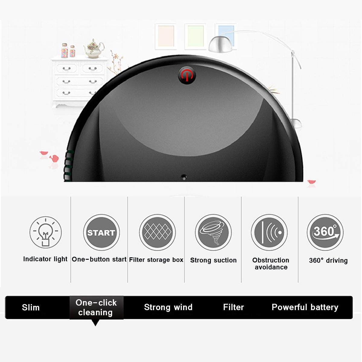 Function: One-button start, sweeping, mopping, vacuum cleaner, USB charging, universal driving, automatic avoidance obstacles, anti-drop, low noise, intimate, low repetition, high coverage